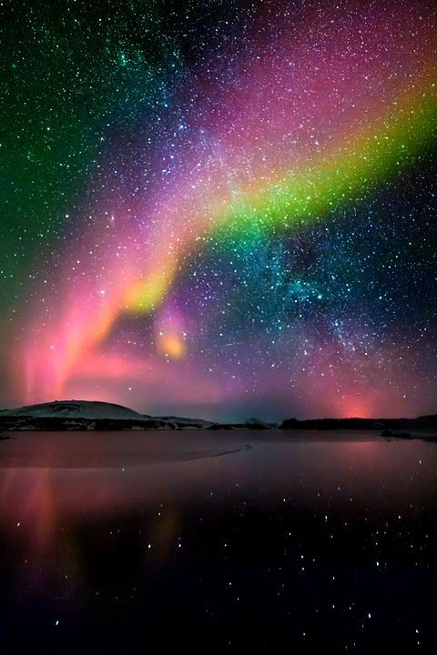 Beautiful Photograph of Aurora Borealis and the Milky Way in Iceland found on Pinterest.