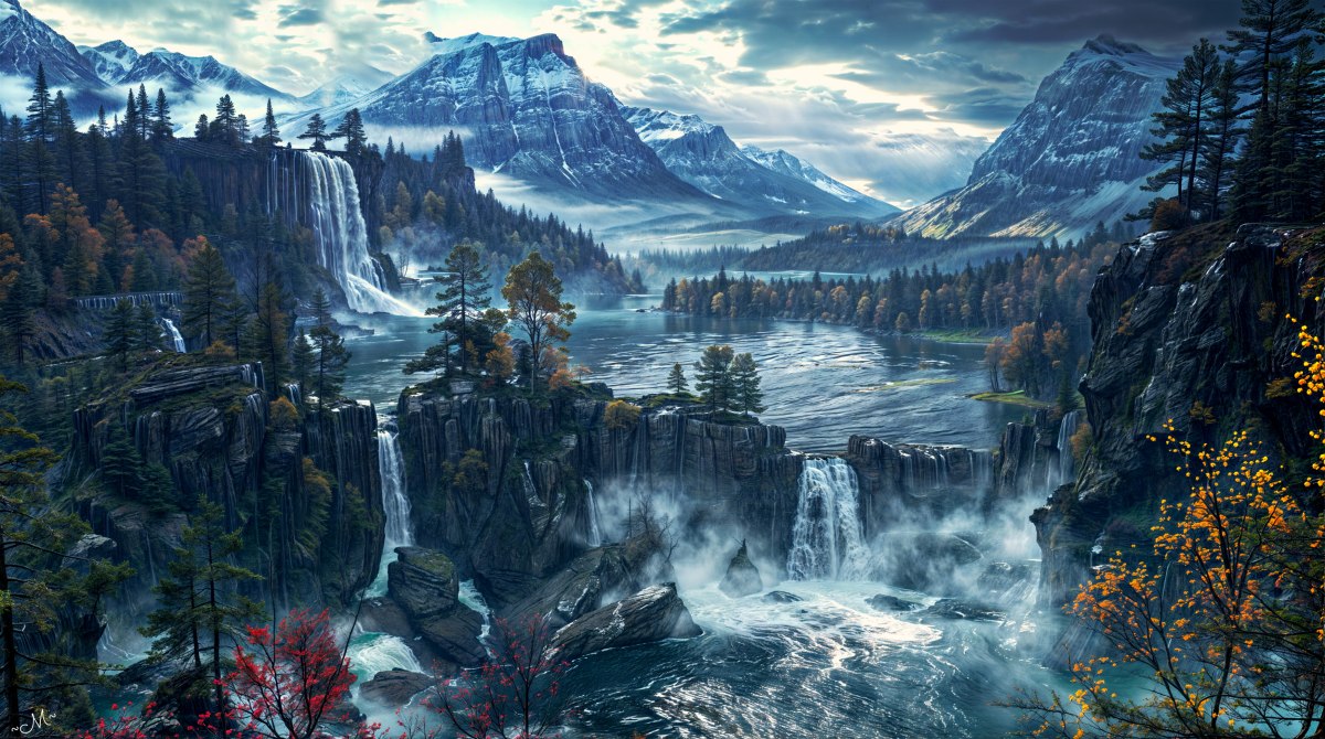 The air in Vrynnyth Ghal is thick with magic, an unseen force that hums throughout the land. Rivers and waterfalls gleam like liquid silver under the sun, and at dusk, the skies blaze with hues of gold, crimson, and violet, as if the heavens themselves are painted by the hand of a forgotten god. The Northern Lights, known as Aethralyn, often ripple across the night sky, casting a ghostly glow upon the earth, a reminder of the ethereal realm that lingers just beyond the veil.